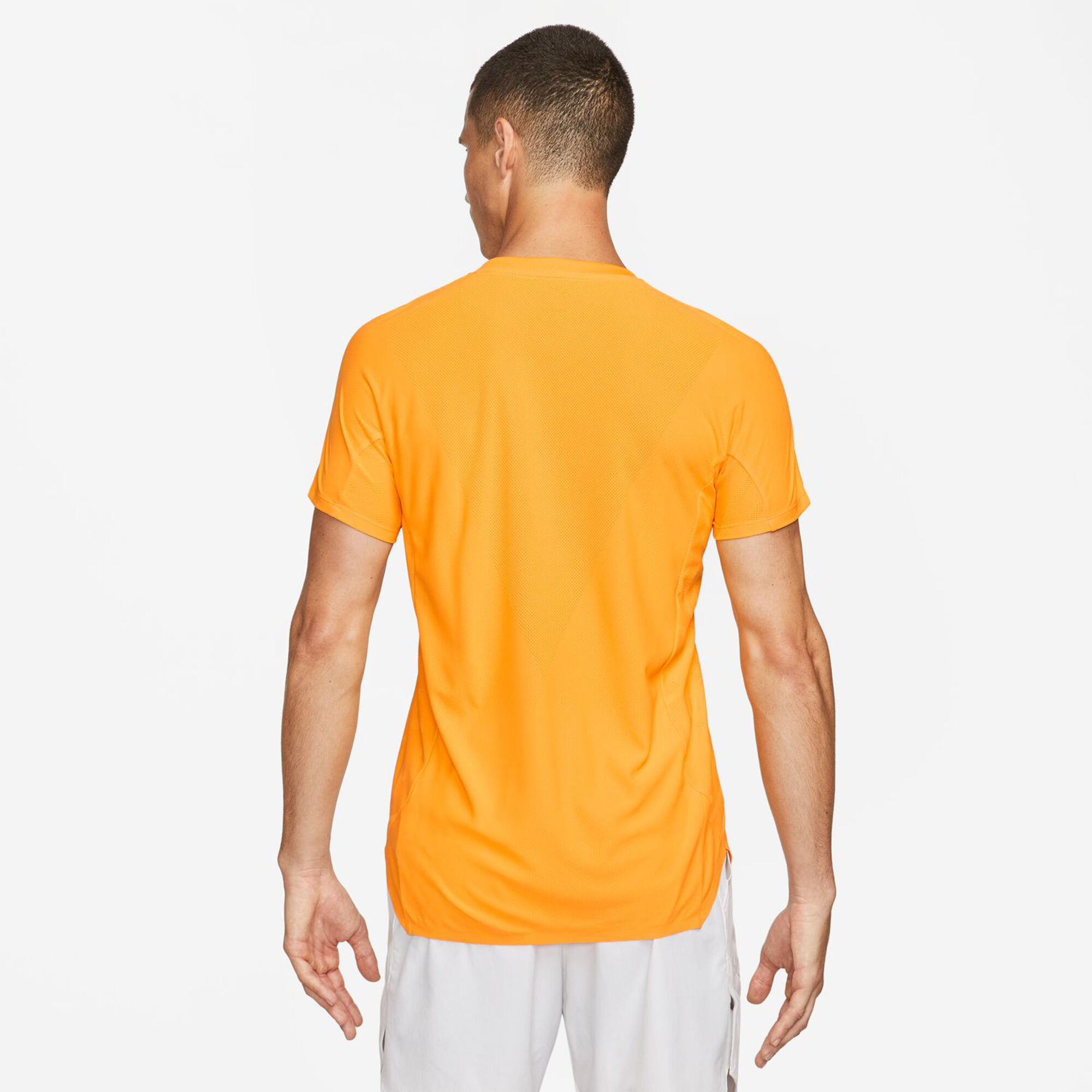 The products were developed with the help of feedback from our elite players. So you'll experience the look and feel of the world's best on the biggest stage. Our stretchy, breathable slam polo shirt ensures unrestricted freedom of movement. The innovative sleeve design allows freedom of movement and an uncomplicated feel at every rally. The floral pattern was inspired by the electricity and euphoria seen at the last major tennis tournament of the year. Nike Dri-FIT ADV technology combines moisture-wicking fabric with advanced construction and design elements to keep you comfortably dry. The jacquard knit material has a smooth texture. A specially designed knit insert on the back provides a breathable, airy feel and has been strategically placed in areas where you sweat a lot. Sleeve seams have been placed at the front of the shoulder, creating a curve that follows the shape of your arm so you can move freely as you serve. The quarter zipper has a zipper tab that won't interfere during your serves. A stand-up collar reduces distractions at the shoulder and neck. A longer-cut hem at the back ensures added protection.