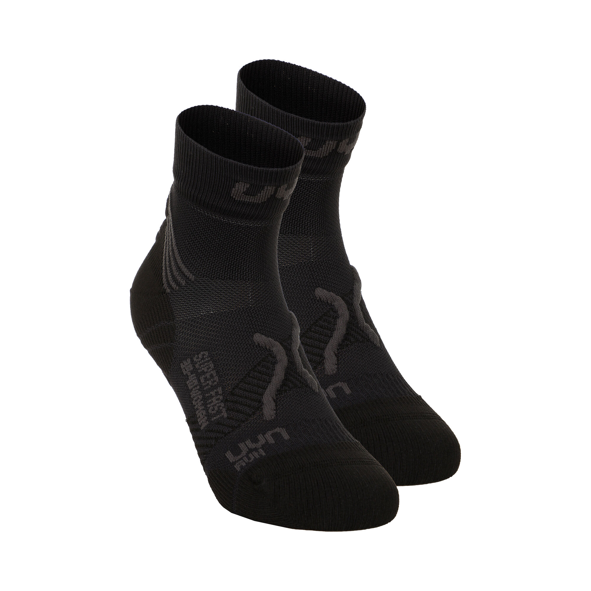 Want to run fast? The Super Fast running socks in a 2-pack from UYN lay the foundation for a faster pace. The sole construction is designed for sporty loads. For an optimal fit, a particularly low-friction and intensively ventilated structure is used below the ankle. Natex, a 100% plant-based nylon fiber, guarantees an optimal climate.